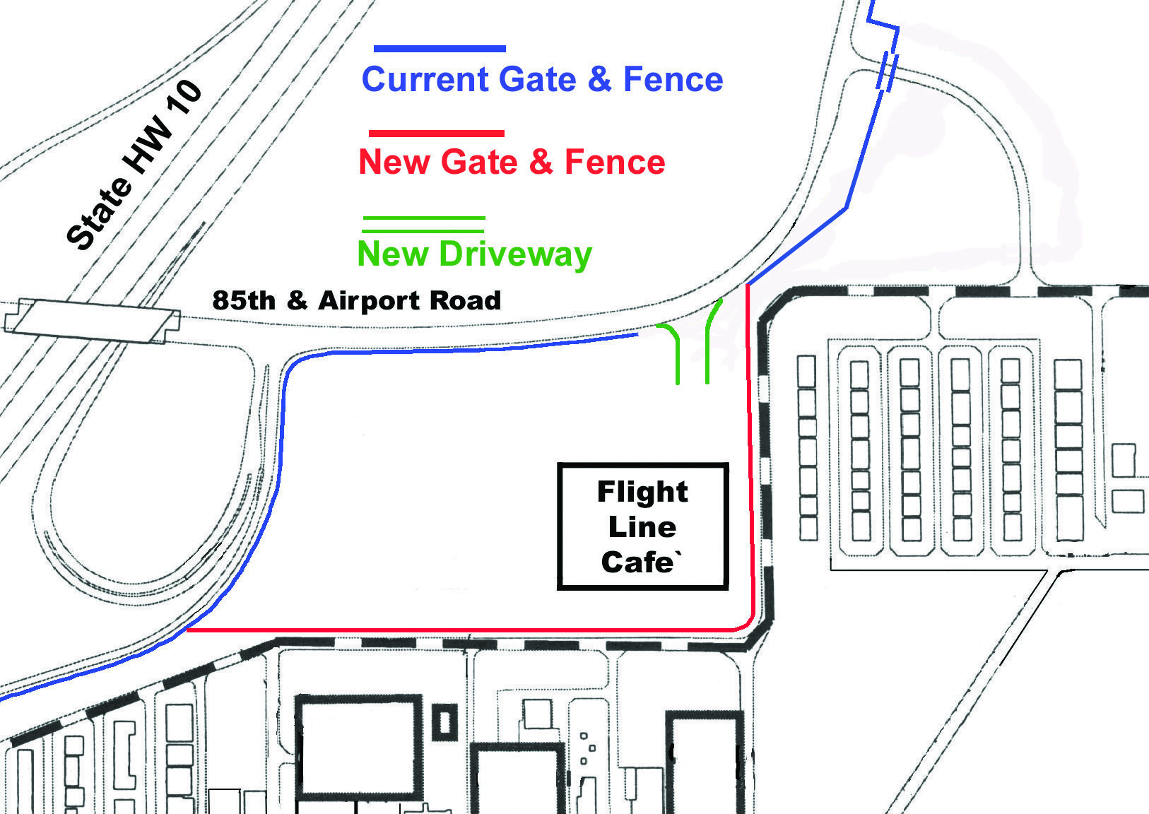 new driveway design to accommodate the facility layout. This will allow visitors access without having to go through the airport main entrance gates.